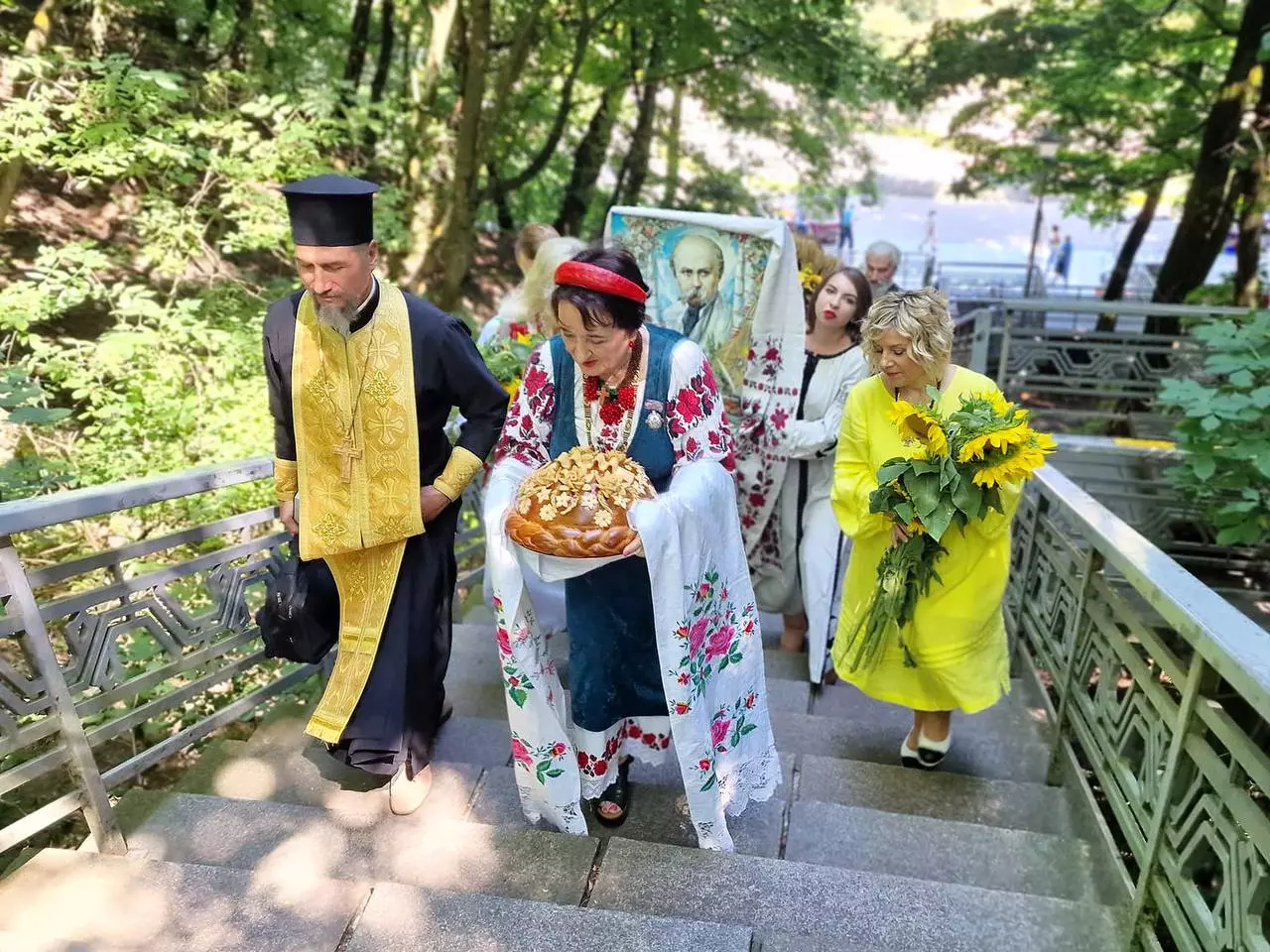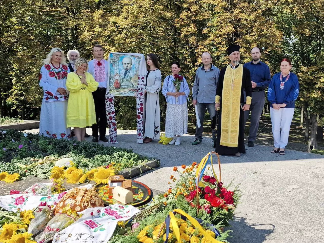 Відзначення річниці розпочалося з поминальної панахиди, яку відслужив місцевий священик отець ПЦУ Михайло. З вітальним словом виступили представники акції “Обніміться ж, брати мої…” та працівники Шевченківського національного заповідника “Тарасова гора”. Далі наша невеличка делегація піднялася з портретом Кобзаря на Чернечу (Тарасову) гору в Каневі.