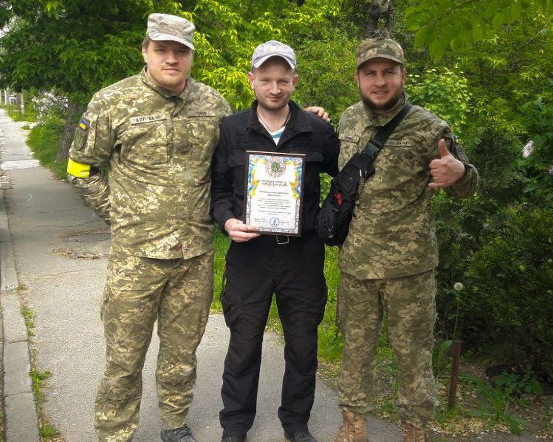 Für Patriotismus und die Stärkung der territorialen Verteidigung der Stadt Kiew überreichte der Kommandeur der 8. DV DFTG Kiew „Legion D“ Grab Oleksandr an die Freiwilligen der gemeinnützigen Stiftung „Erzengel des Lichts“, vertreten durch Ivan Thorik Danke!