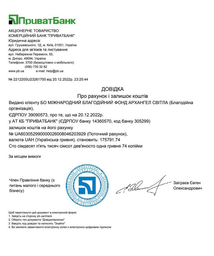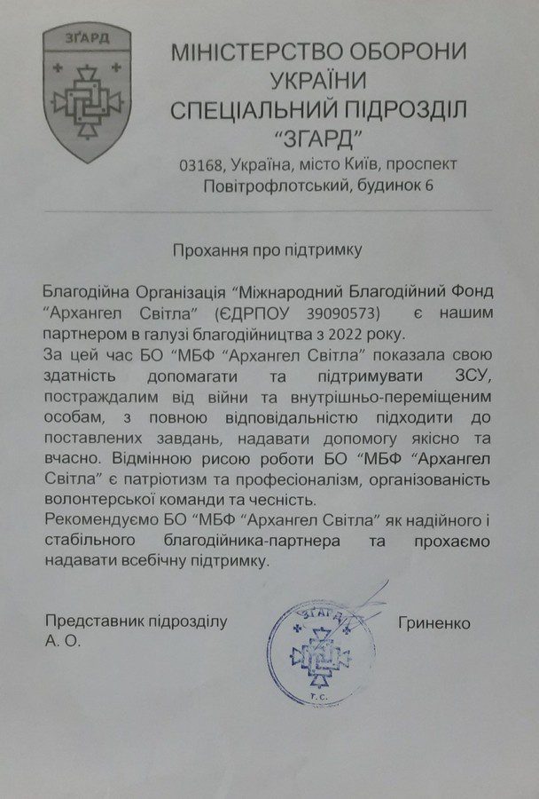 З повагою та найкращими побажаннями, Міжнародний Благодійний Фонд «АРХАНГЕЛ СВІТЛА»