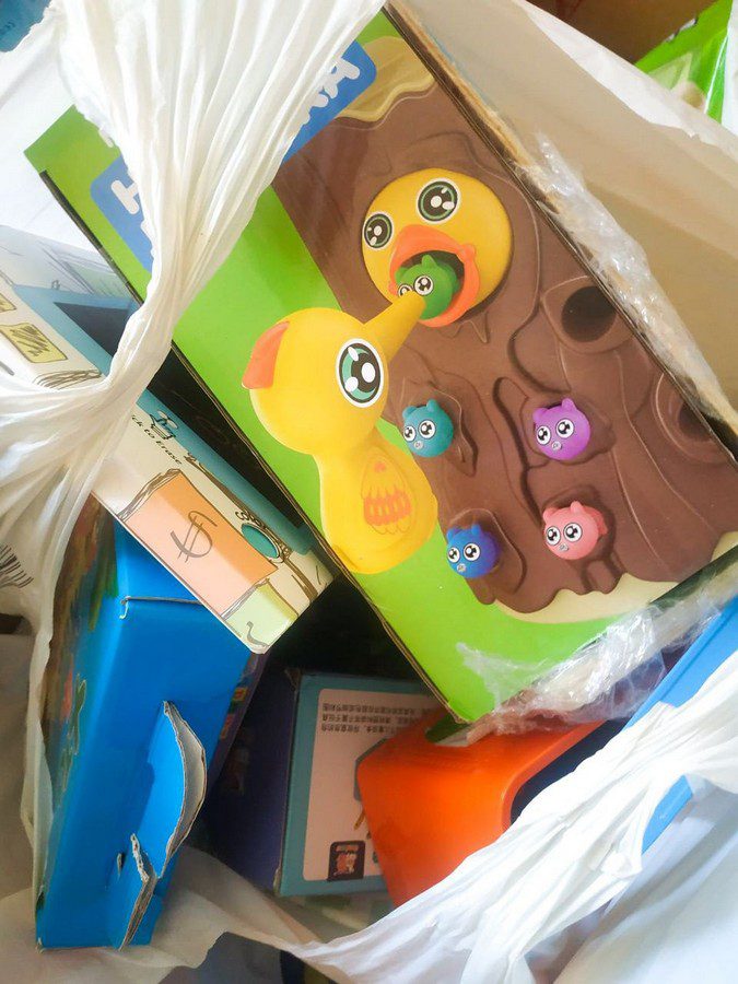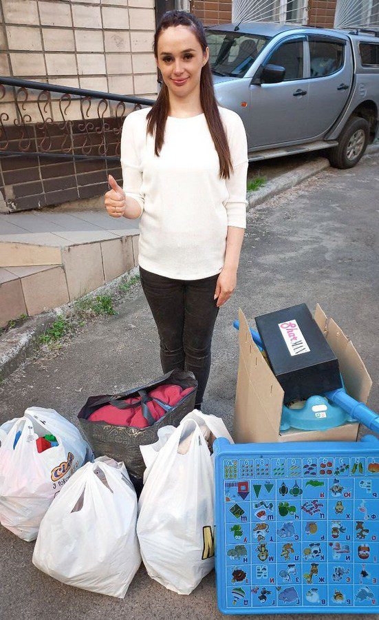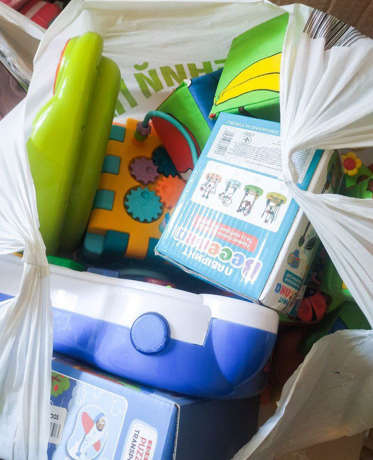 Небайдужі жінки та чоловіки за власний кошт придбали пелюшки, засоби гігієни, іграшки, солодощі, розмальовки, книжки та одяг й передали усе волонтерам благодійного фонду “Архангел світла” для нужденних з Харківської області.