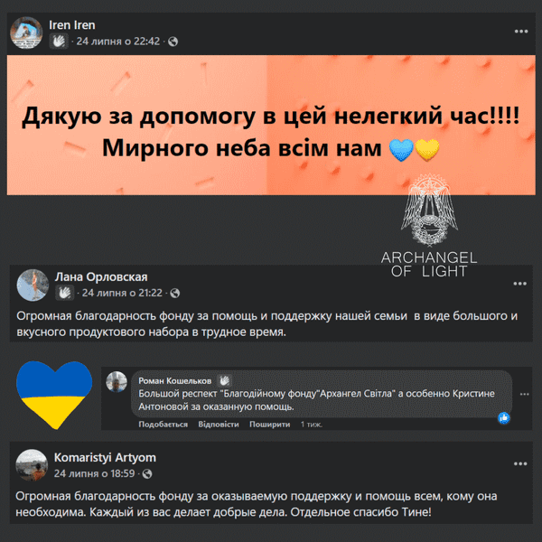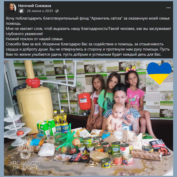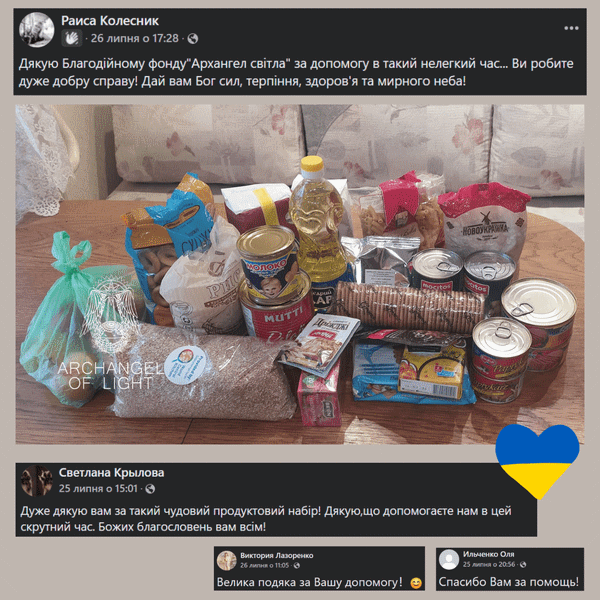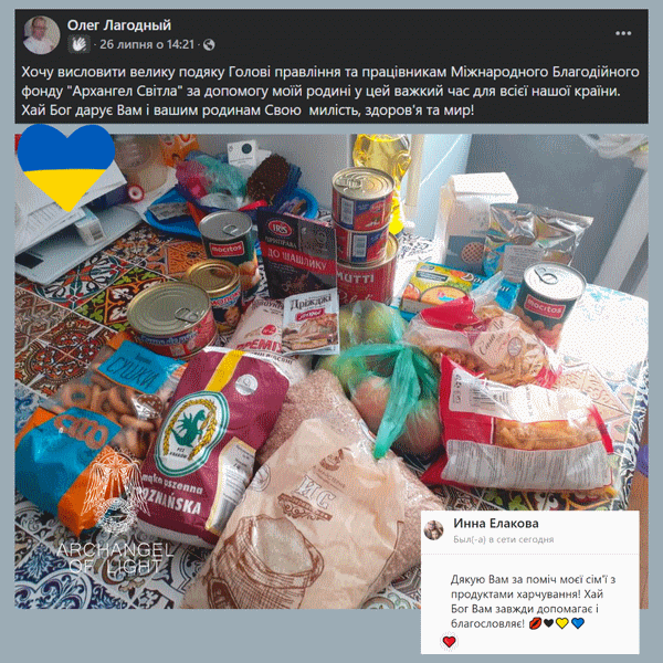 Récemment, des bénévoles de la fondation caritative « Archange de Lumière » ont fourni une aide aux habitants de Kiev et de Vasylkov des associations caritatives « World Central Kitchen » et « GoodWill » sous forme de kits alimentaires, de vêtements et de jouets pour enfants !